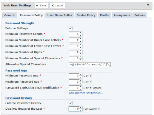Provisioning accounts is easy with the use of templates which automatically defines the settings and features granted when a Web User is created.